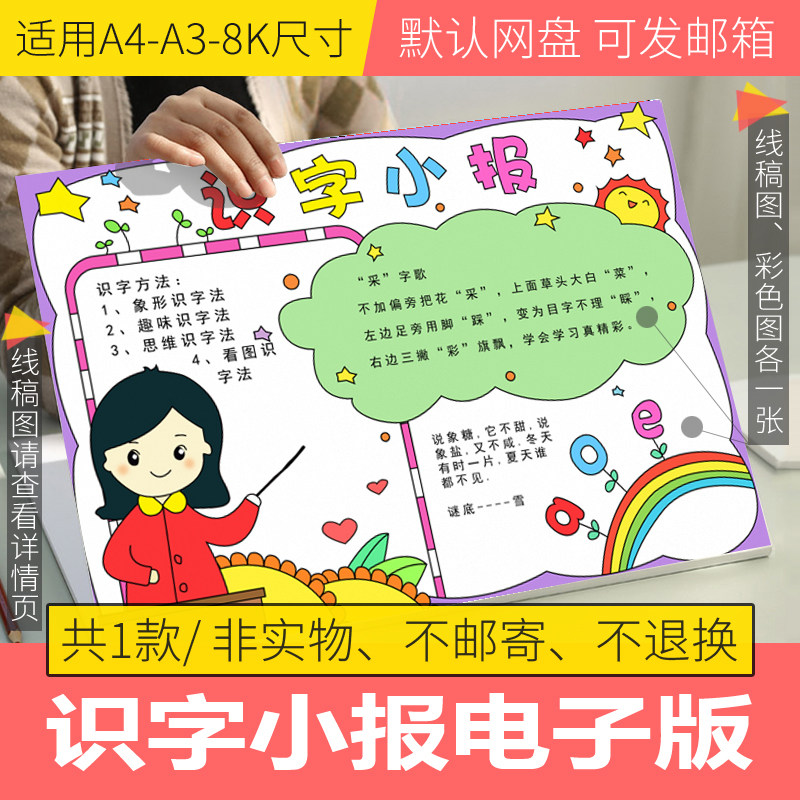 识字手抄报模板电子版a3一年级小学生识字手抄报半成品线稿可打印热门设计联盟服务商