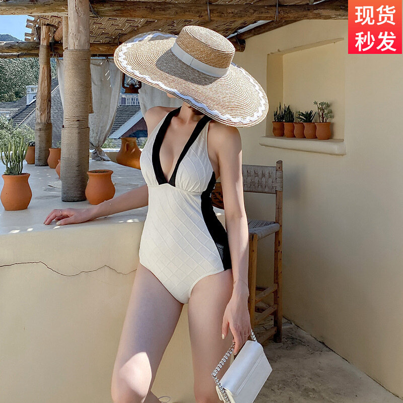 韩国网红ins风款小红书同款深V聚拢性感高腰显瘦温泉连体泳衣女热门设计联盟服务商