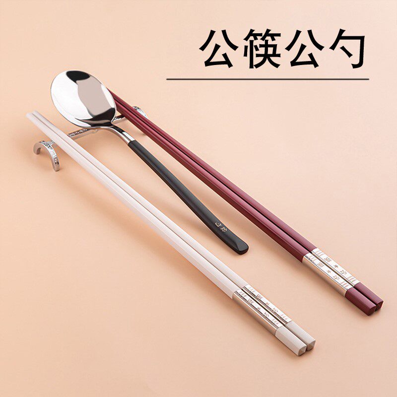 公勺公筷套装不锈钢家用筷子勺子一人一筷酒店高档加长餐饮餐具热门设计联盟服务商