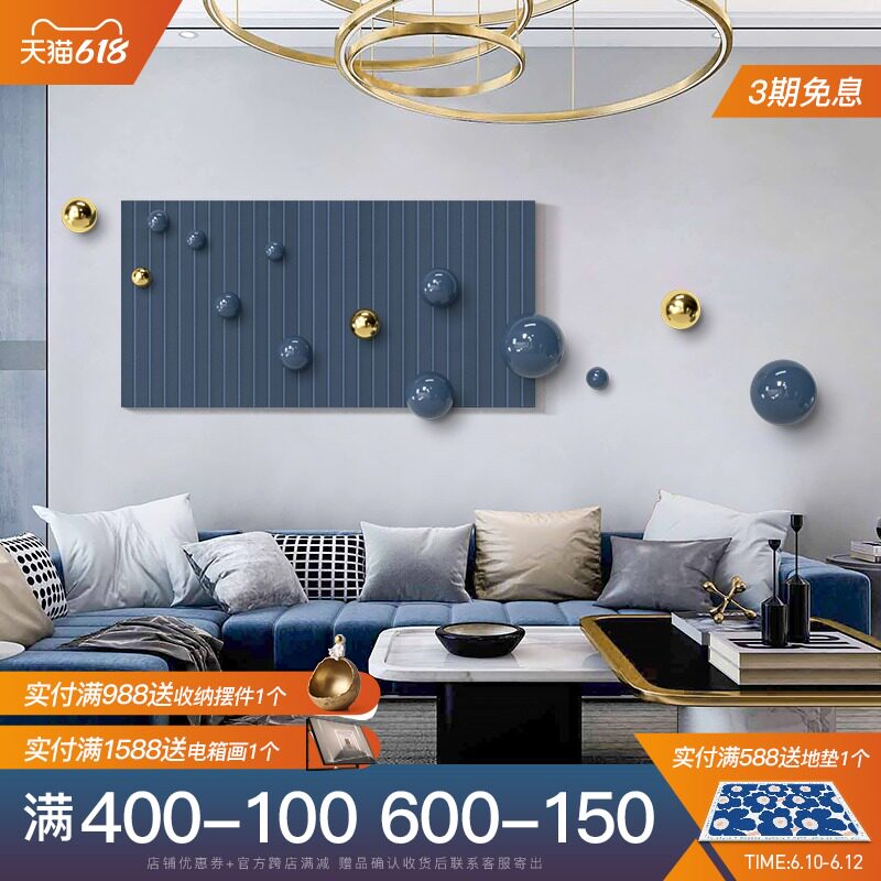 3D立体装饰画轻奢客厅背景墙壁画横幅创意金属球体卧室设计师挂画热门设计联盟服务商