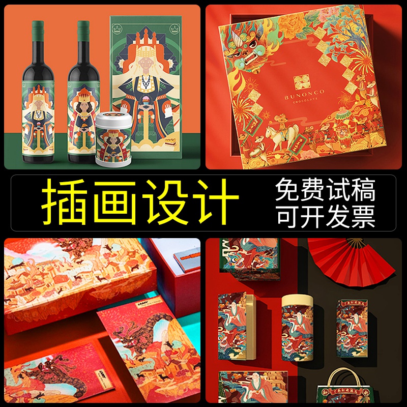 原创包装插画设计食品产品礼盒标签瓶贴国潮漫画卡通商业代画手绘热门设计联盟服务商