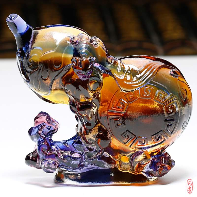 电脑创意葫芦老板办公桌小琉璃摆件男士高档水晶名片座玻璃工艺品热门设计联盟服务商