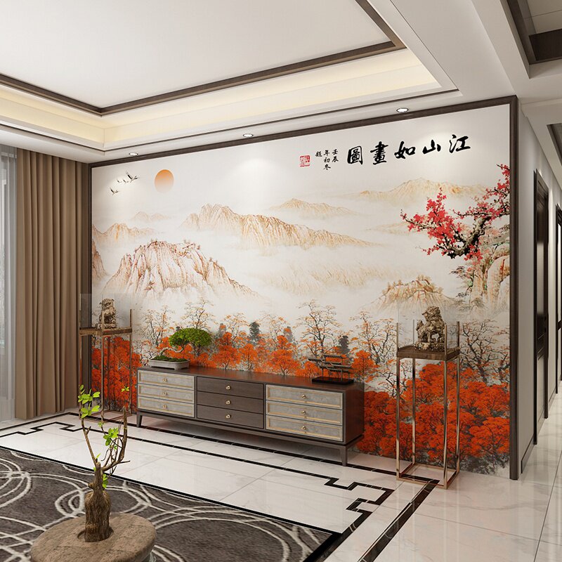 新品R中式墙布山水墙纸电视背景墙壁纸卧室客厅壁布影视墙无缝装热门设计联盟服务商
