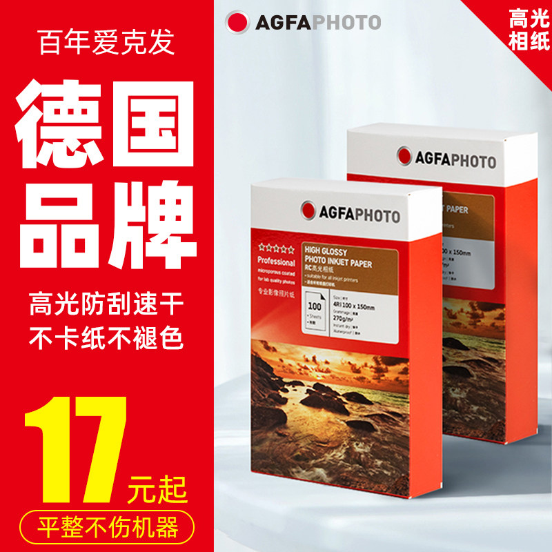 德国爱克发RC高光相纸a4家用5寸6寸7寸防水防刮绒面磨砂佳能惠普爱普生彩色喷墨打印机照片纸相片4r相册纸3r热门设计联盟服务商
