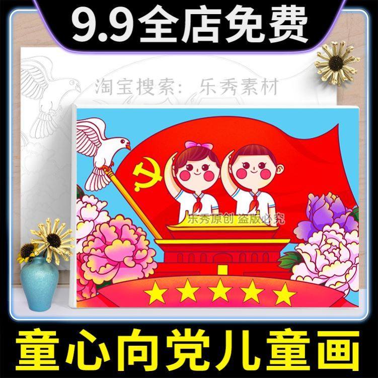 建党节手抄报红领巾心向党模板小学生七一童国线描涂色素材热门设计联盟服务商